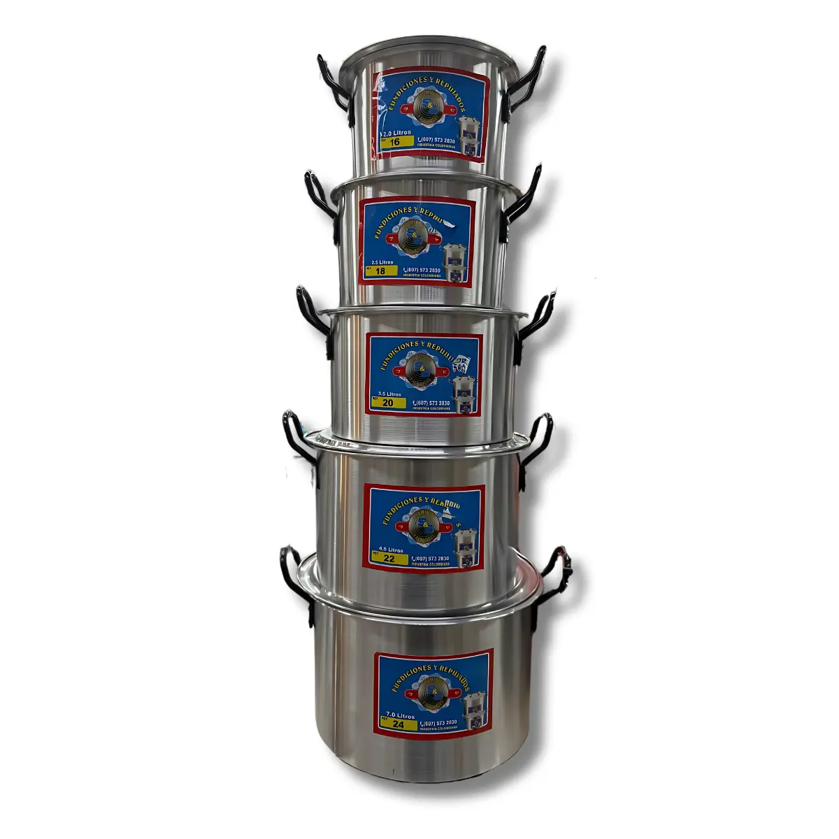 Juego de 5 Ollas en Aluminio Referencias 16 a la 24 – Versatilidad y Resistencia para tu Cocina