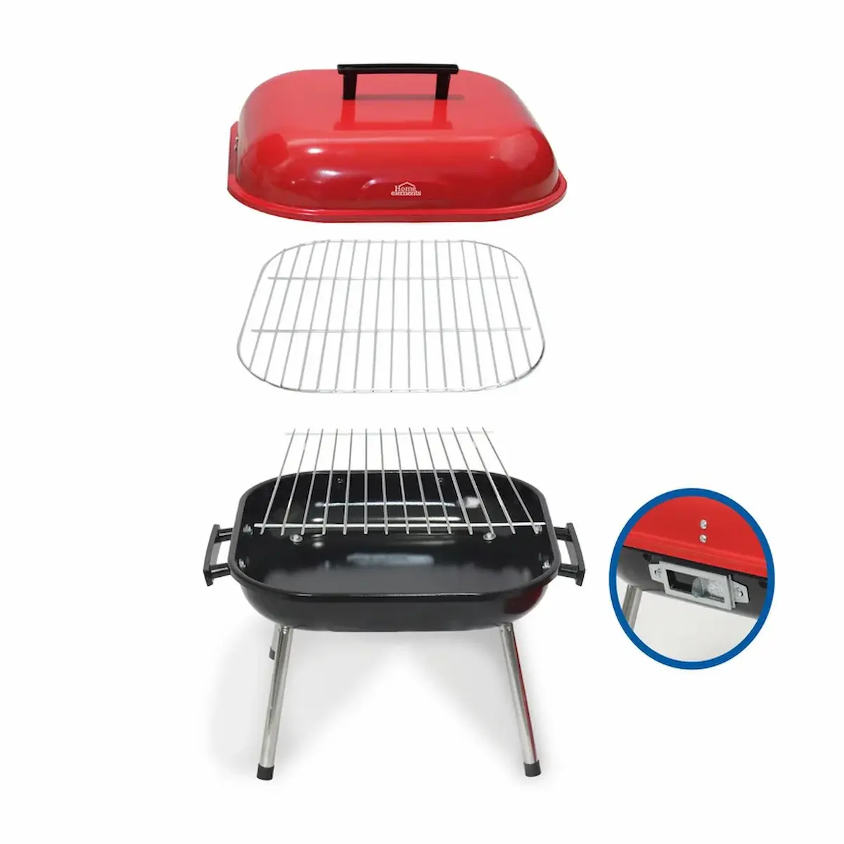 Asador de Carbón BBQ Rojo – Compacto y Práctico para tus Parrilladas