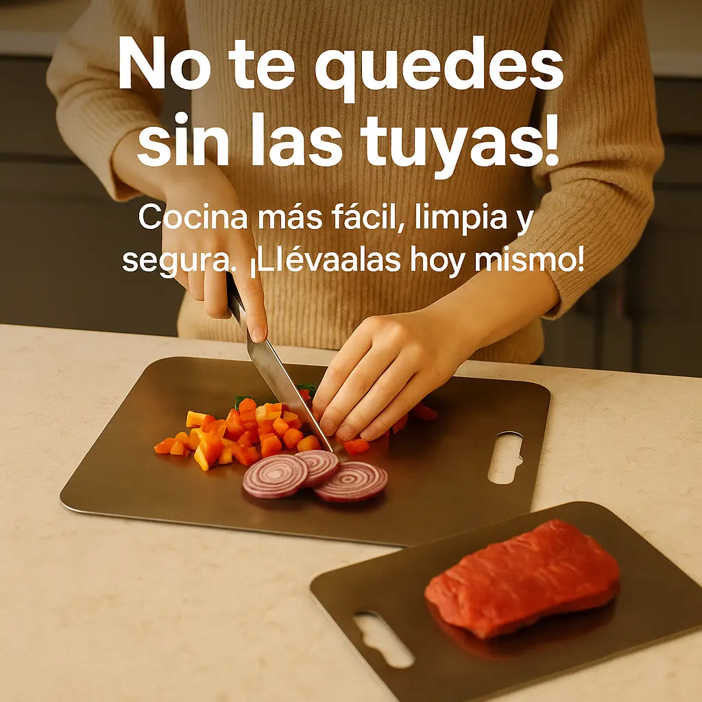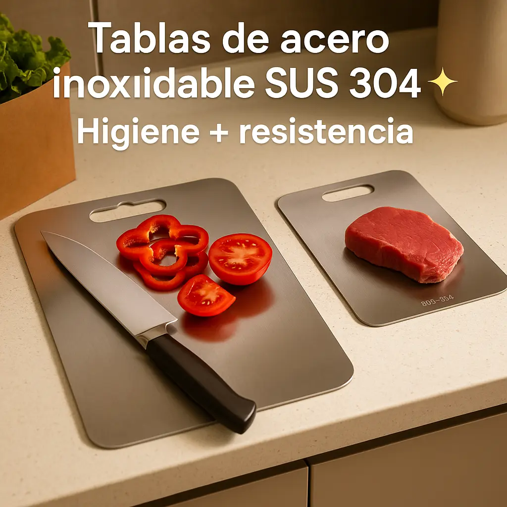 La tabla de acero inoxidable es la elección ideal para quienes buscan máxima higiene, resistencia y practicidad en la cocina. A diferencia de las tablas tradicionales, su superficie no absorbe olores ni bacterias, garantizando mayor seguridad alimentaria. Además, su durabilidad la hace perfecta para el uso diario, soportando cortes, golpes y altas exigencias. Disponible en dos tamaños (30 cm y 38 cm), se adapta a todo tipo de preparaciones, desde carnes y pescados hasta frutas y verduras. ¡Un básico que combina fuerza, limpieza y estilo profesional en tu cocina!